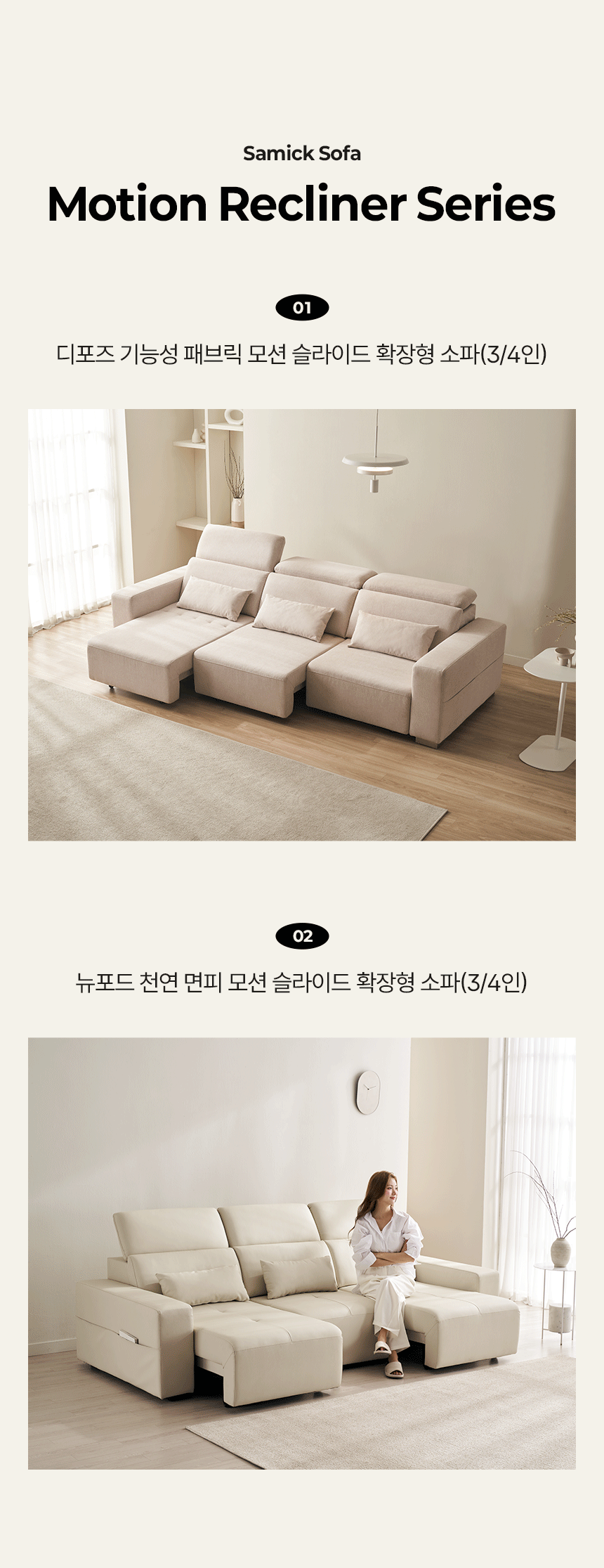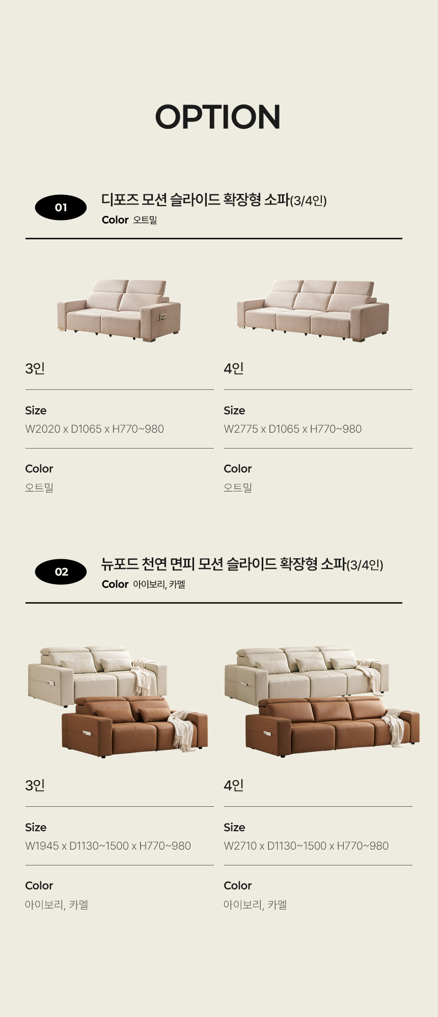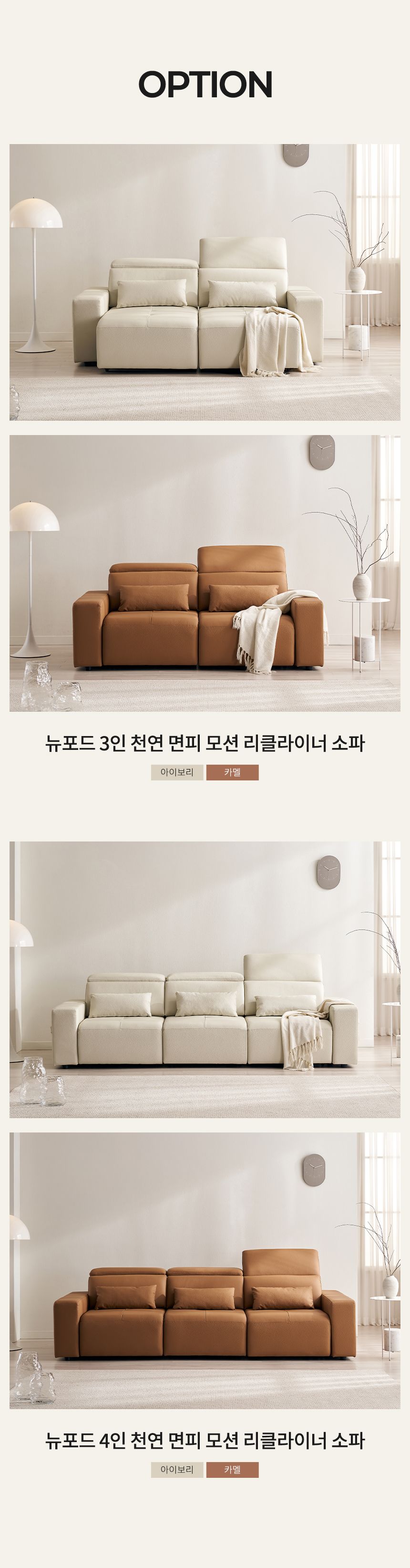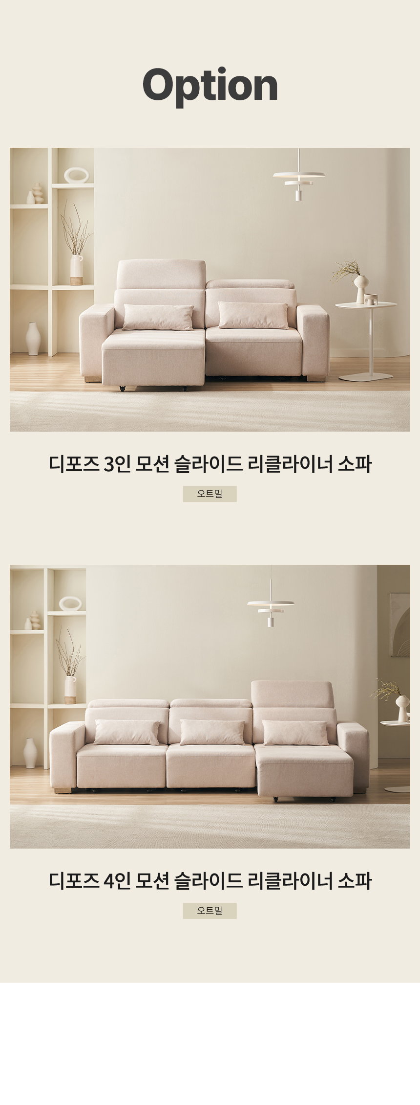 | 품명 및 모델명 | 디포즈 3인/4인 모션 슬라이드 확장형 리클라이너 소파 | ||