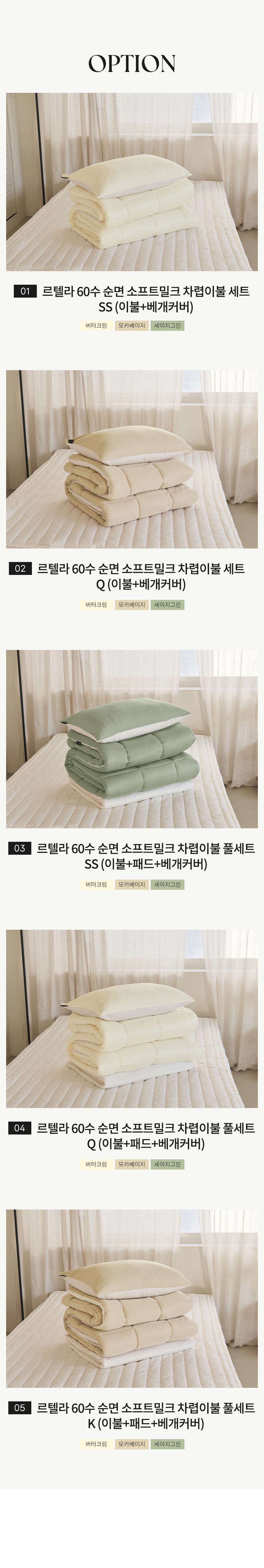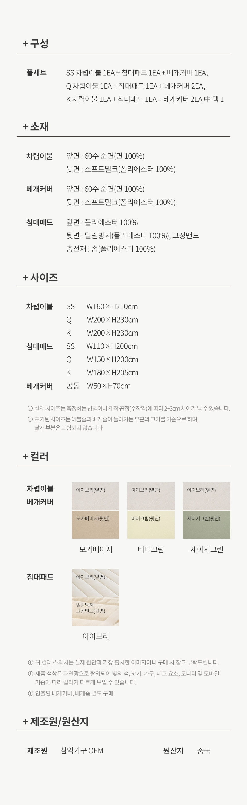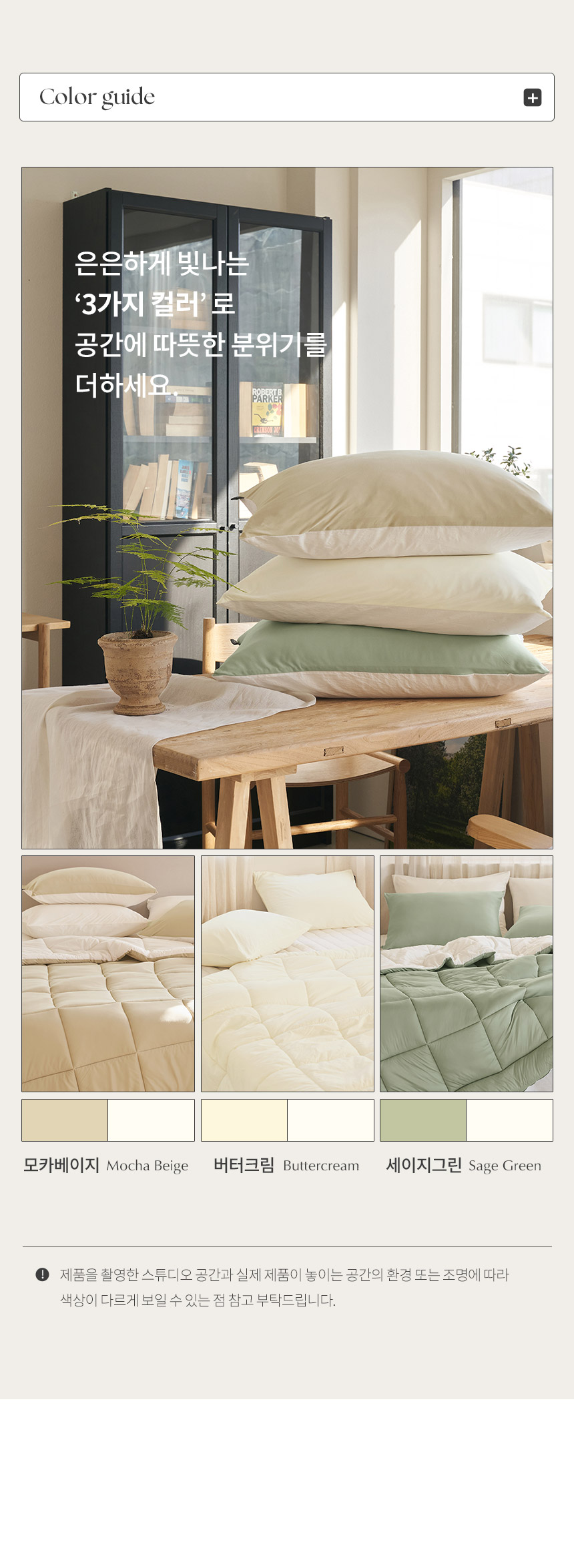 | 색상 | 버터크림,모카베이지,세이지그린 | ||