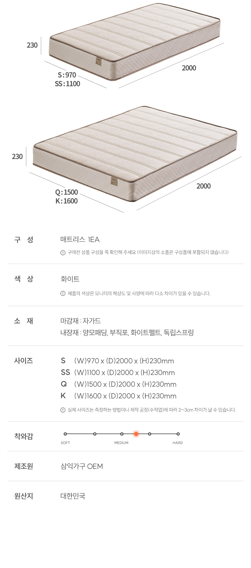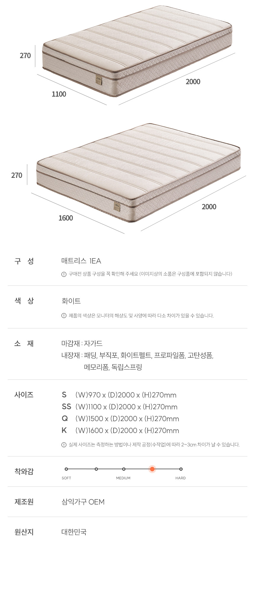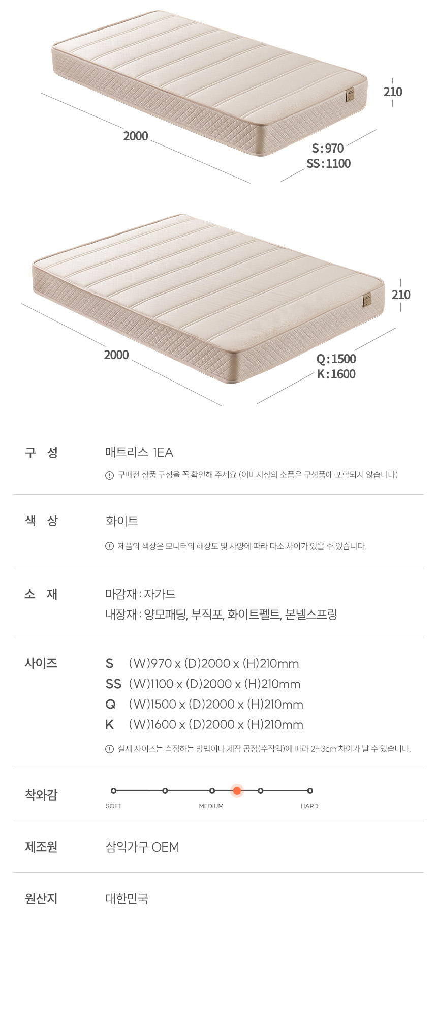 | 품명 및 모델명 | 슬로디 양모 본넬/독립 매트리스 | ||