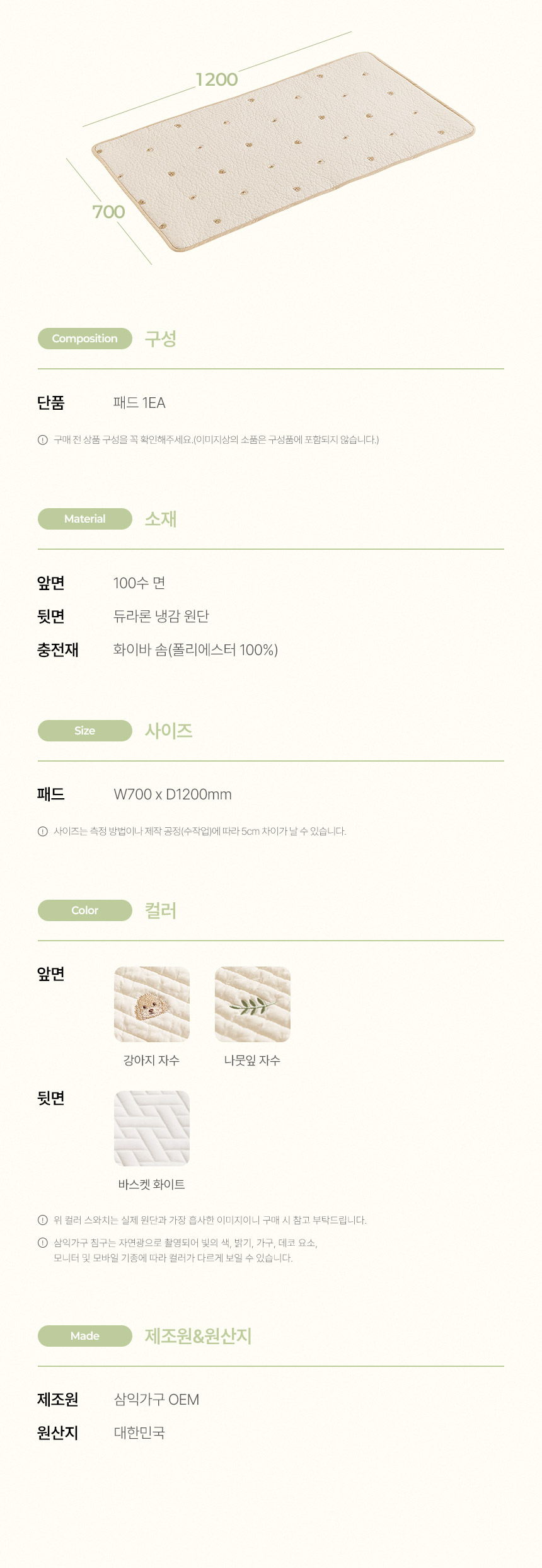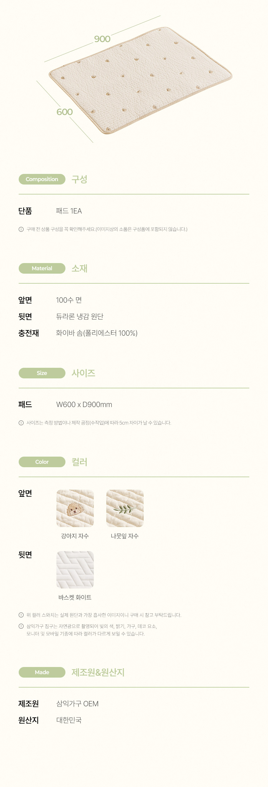 | 색상 | 강아지자수,나뭇잎자수 | ||