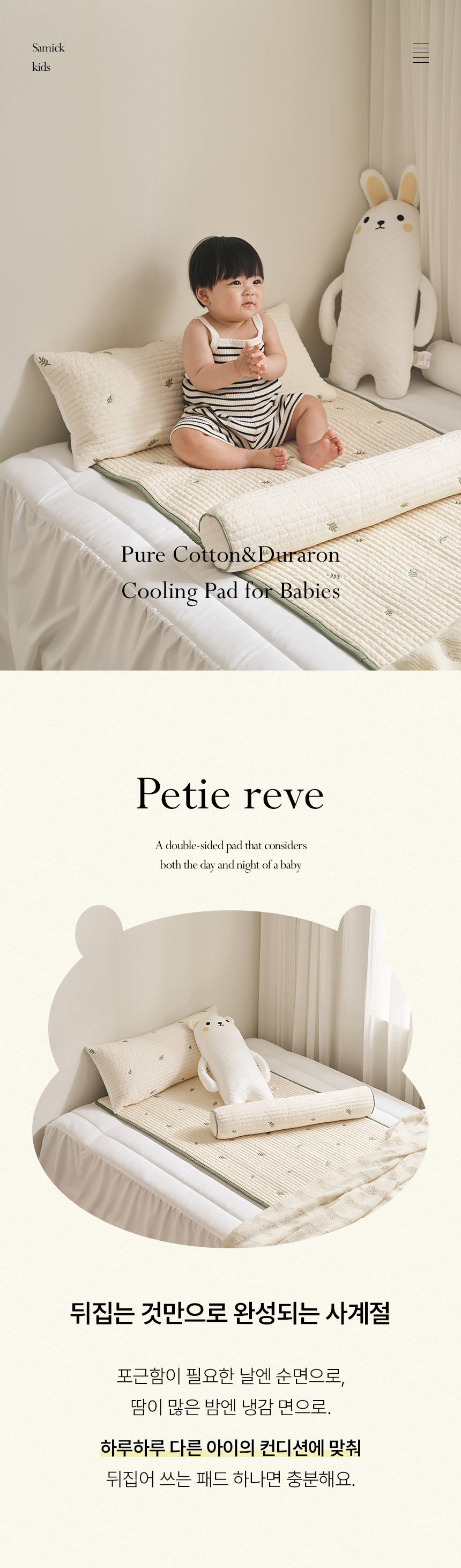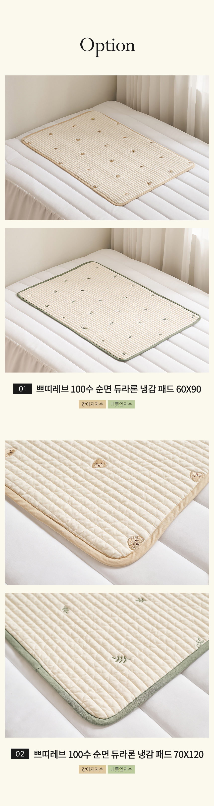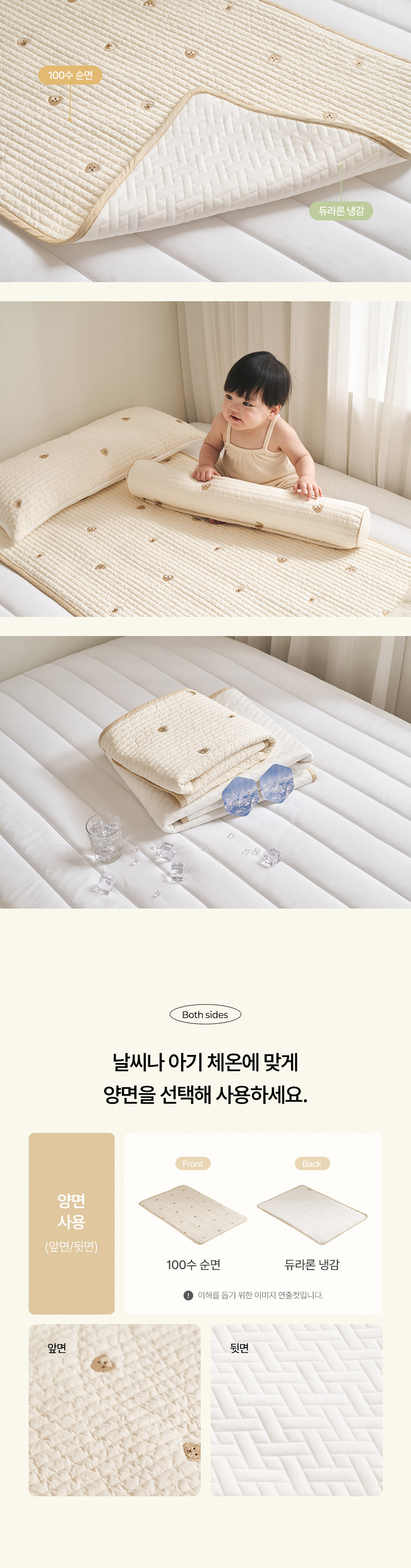 | 품명 및 모델명 | 쁘띠레브 100수 순면 듀라론 냉감 양면패드 유아 쿨매트(60x90/70x120) | ||