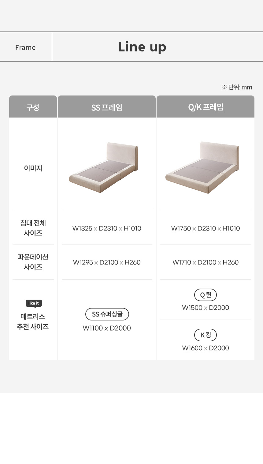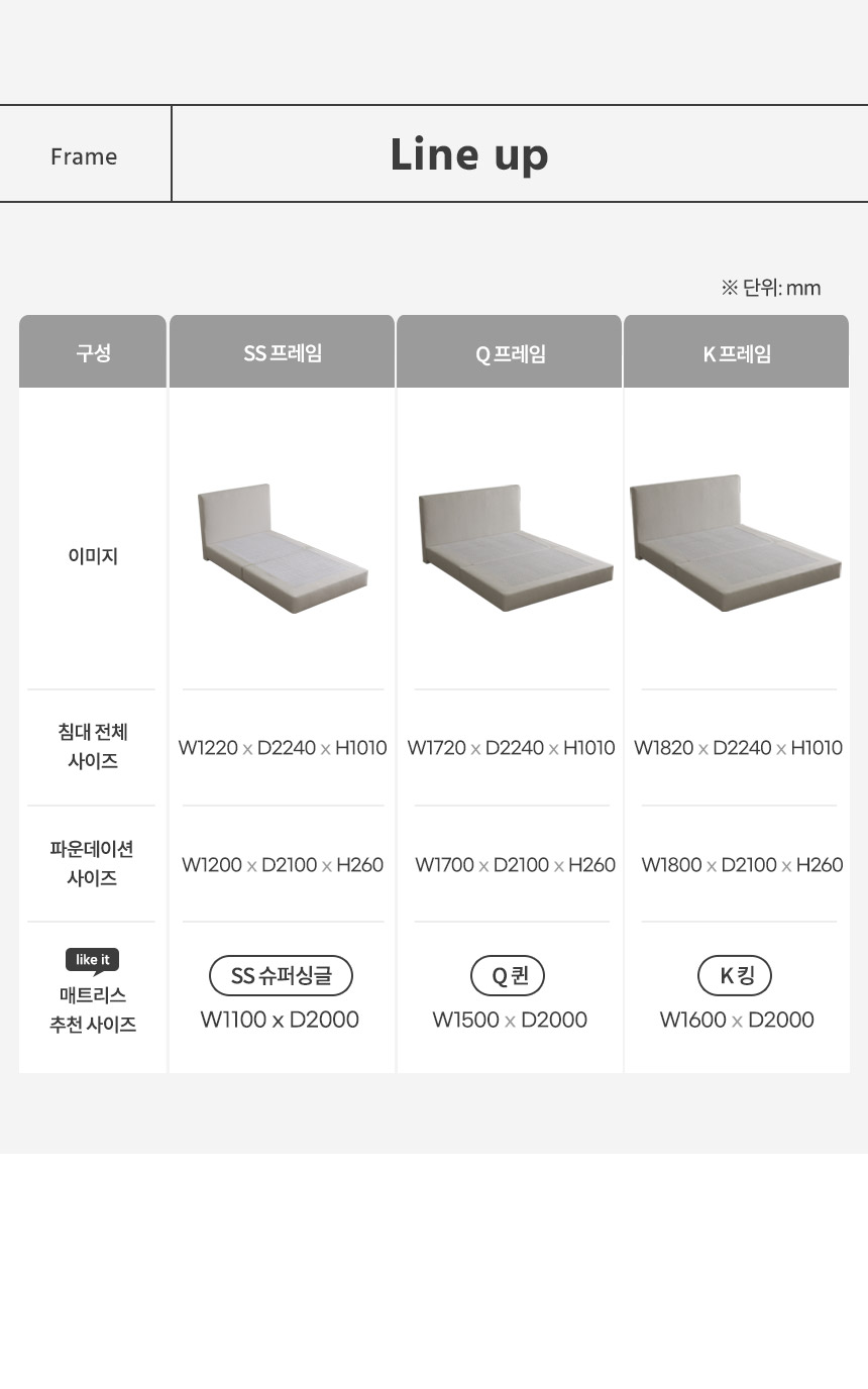 | 품명 및 모델명 | 버브&몬드&로에 호텔 패브릭 침대(SS/Q) | ||