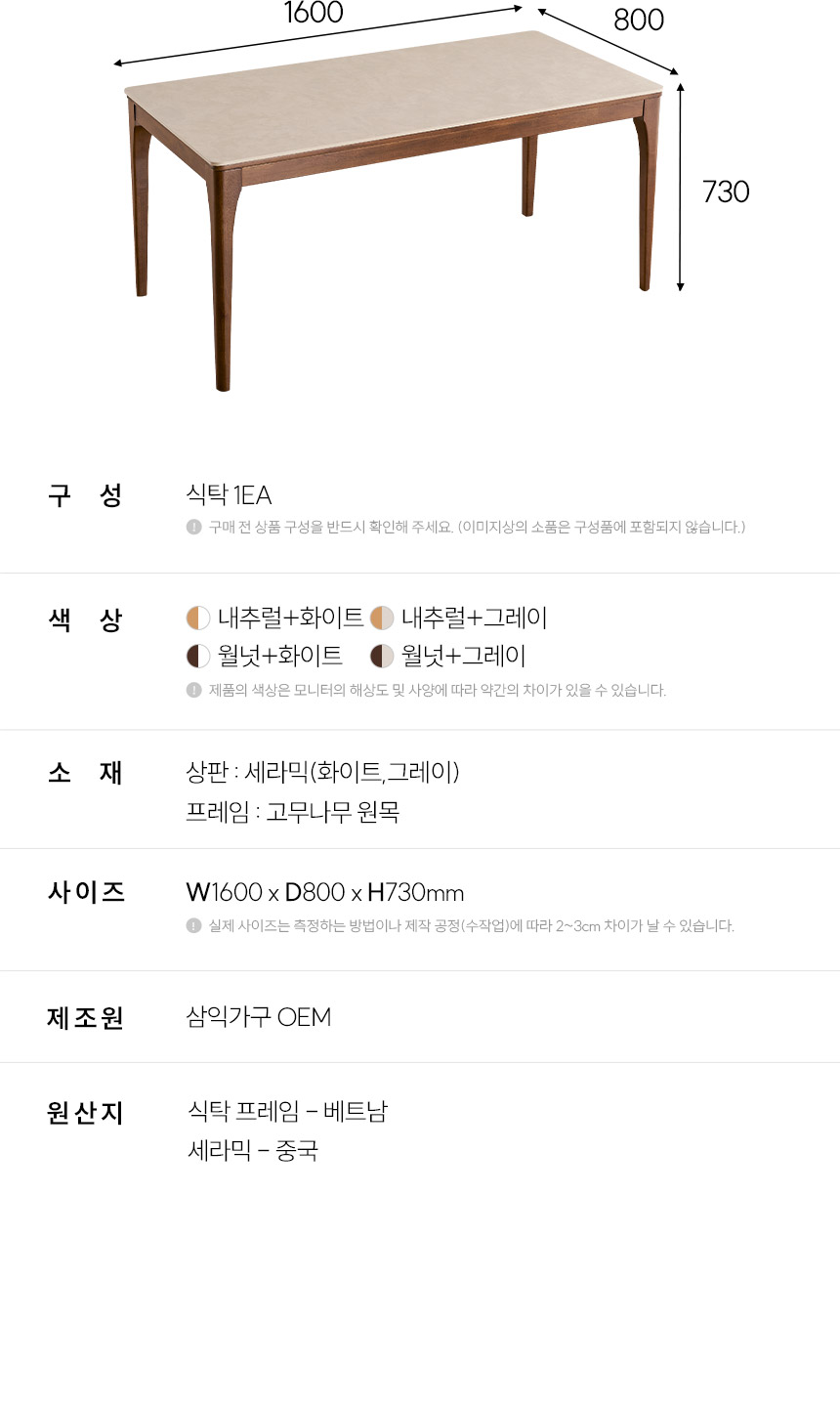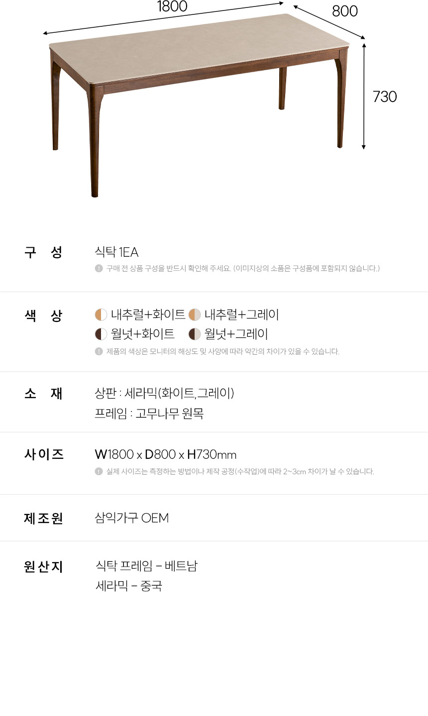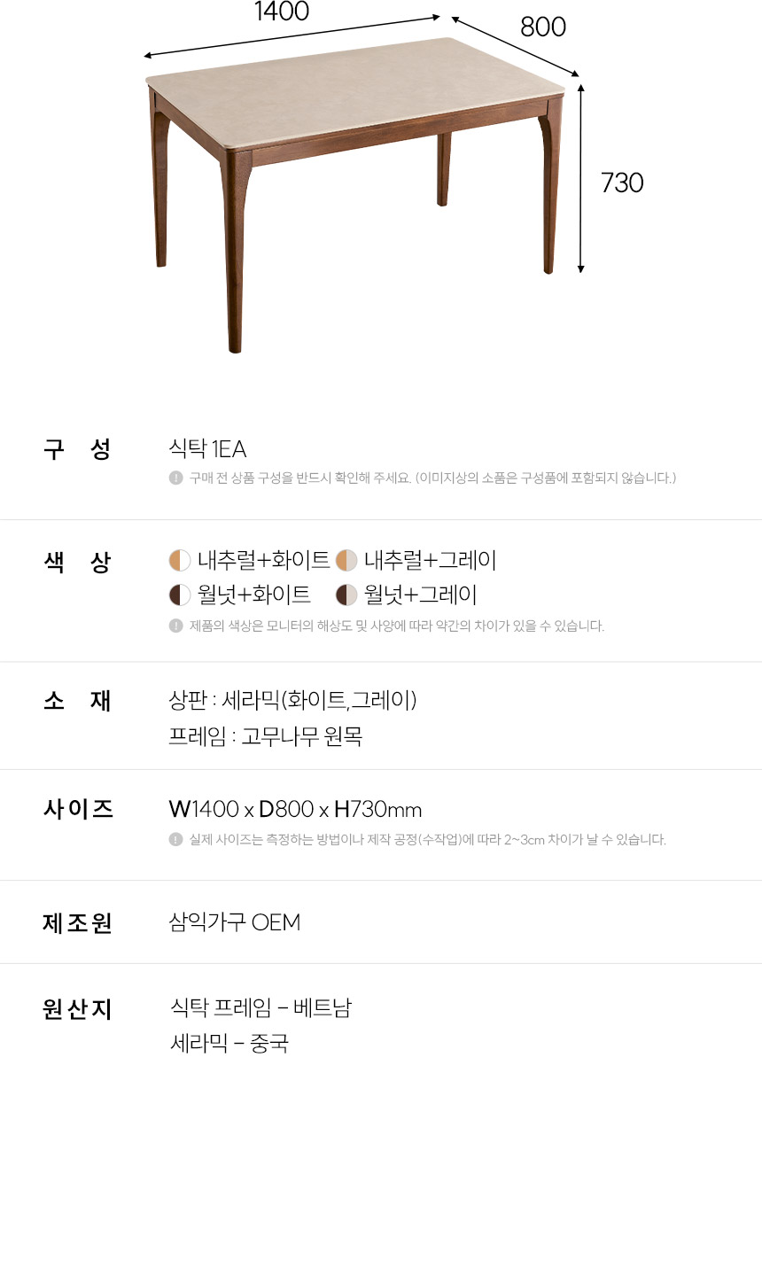 | 품명 및 모델명 | 시에나 포세린 통세라믹 4/6인용 원목 식탁 테이블(1400/1600/1800) | ||