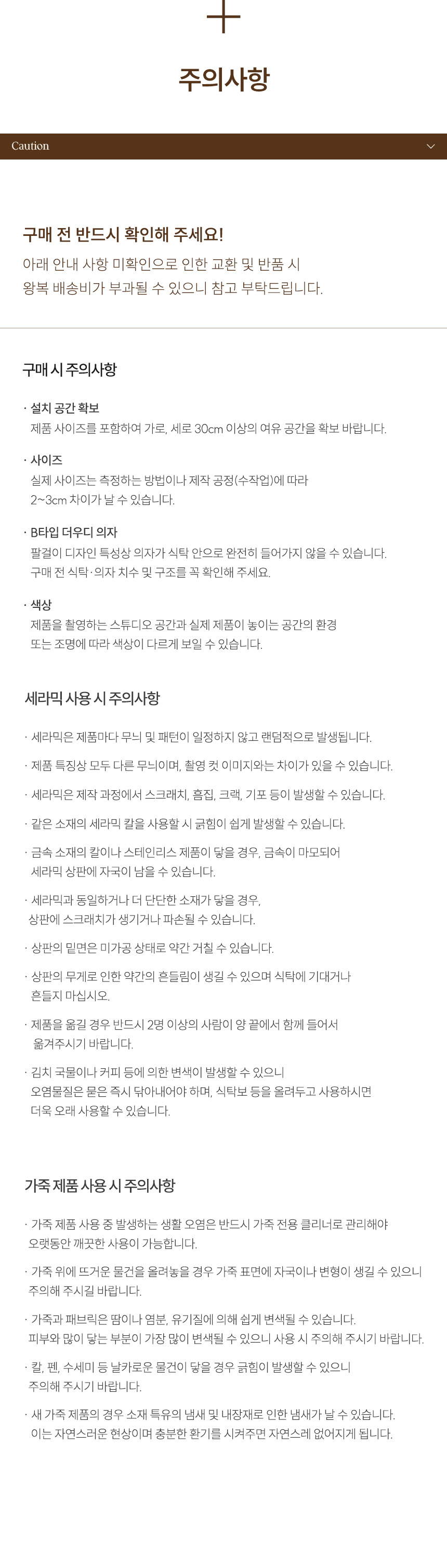 | 배송설치비용 | 1. 착불(도서지역/제주도 배송불가)2. 주문서확인 후 수도권 7일이내 지방 15일 이내 배송예정(공휴일 제외/영업일기준)3. 가구 제품 특성 상 묶음배송불가4. 엘리베이터 사용료, 사다리차, 배송차량 주차료등 추가적인 발생비용은 고객님 부담입니다.5. 반품비용은 지역과 상품에 따라 변경될 수 있습니다. | ||