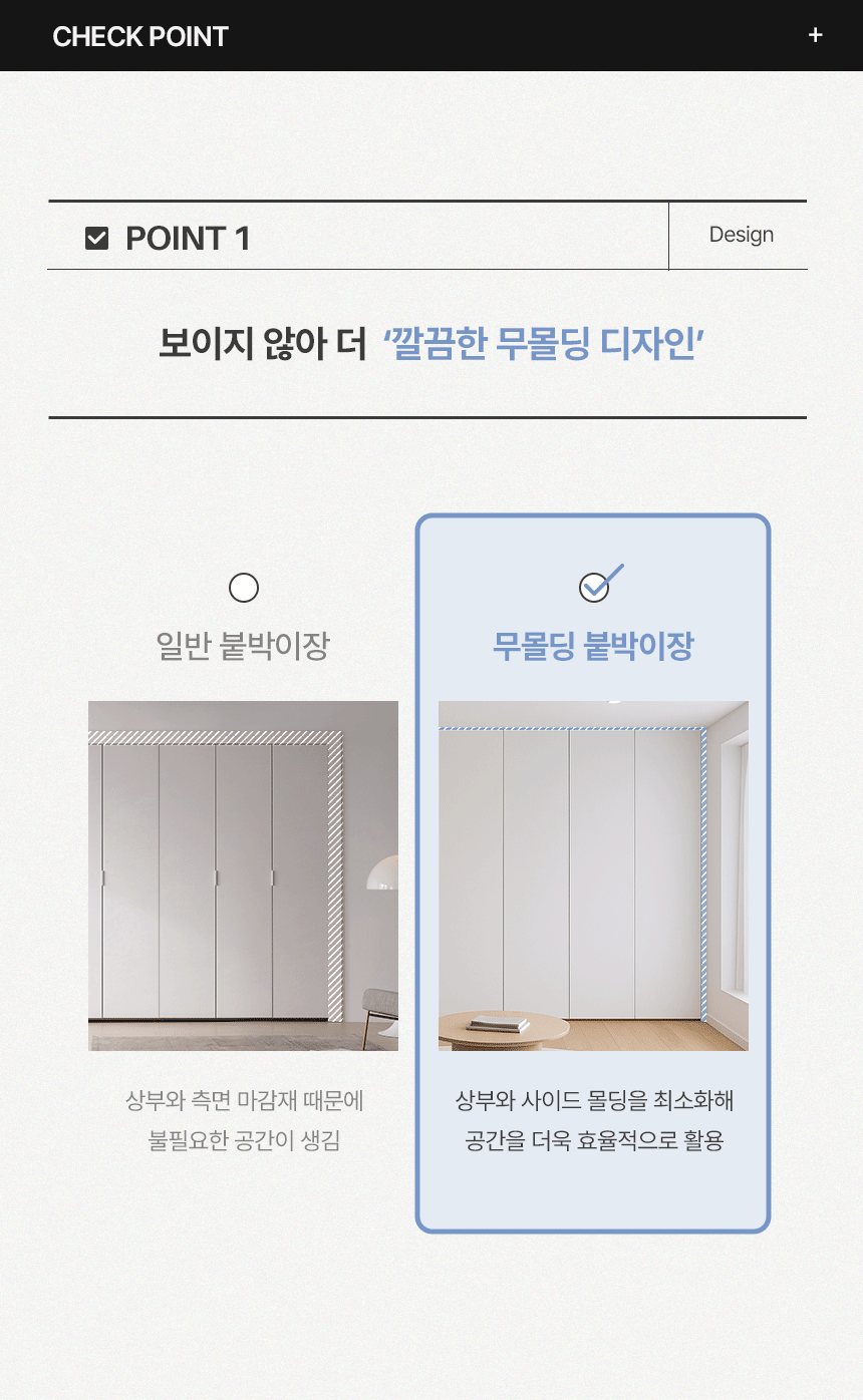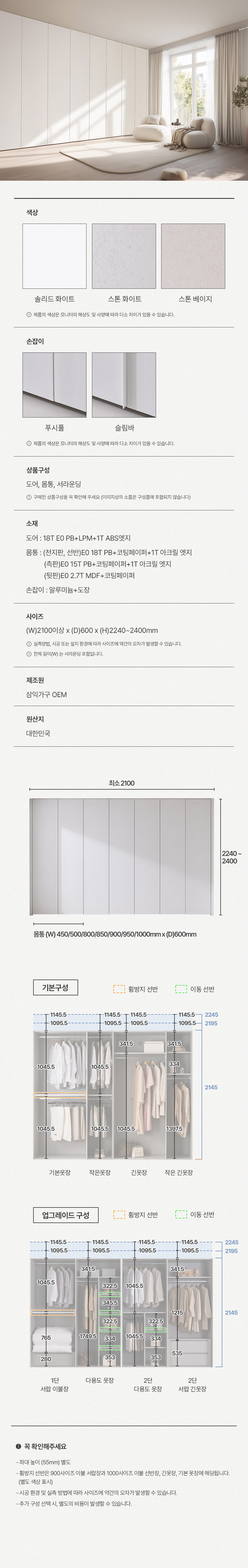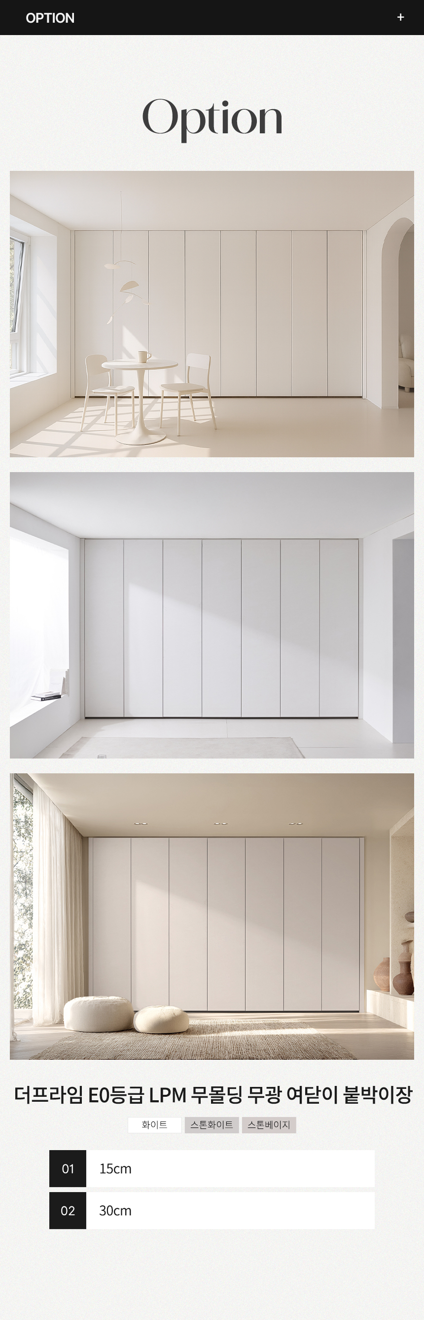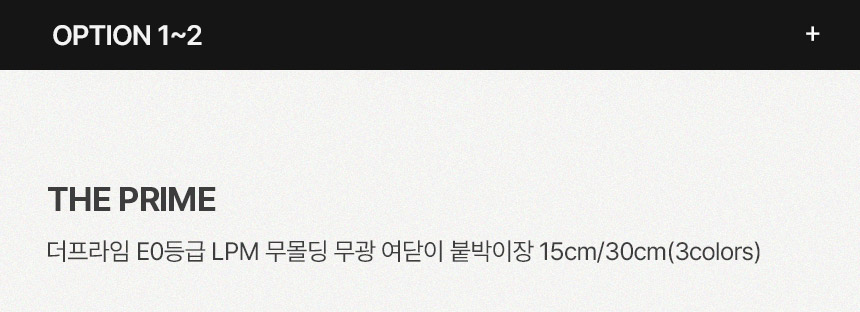| 품명 및 모델명 | 더프라임 E0등급 LPM 무몰딩 무광 여닫이 붙박이장 15cm/30cm(3colors) | ||