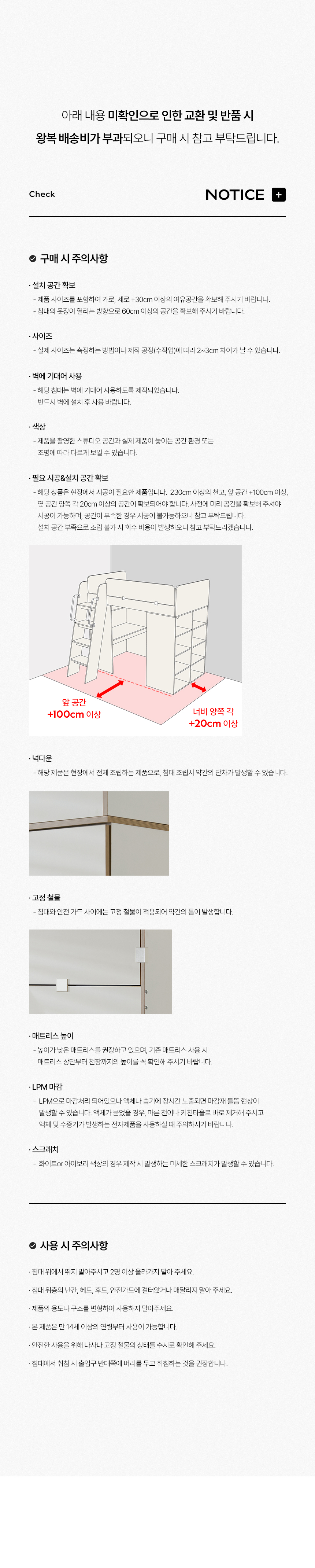 | 배송설치비용 | 1. 착불(도서지역/제주도 배송불가)2. 주문서확인 후 수도권 7일이내 지방 15일 이내 배송예정(공휴일 제외/영업일기준)3. 가구 제품 특성 상 묶음배송불가4. 엘리베이터 사용료, 사다리차, 배송차량 주차료등 추가적인 발생비용은 고객님 부담입니다.5. 반품비용은 지역과 상품에 따라 변경될 수 있습니다. | ||