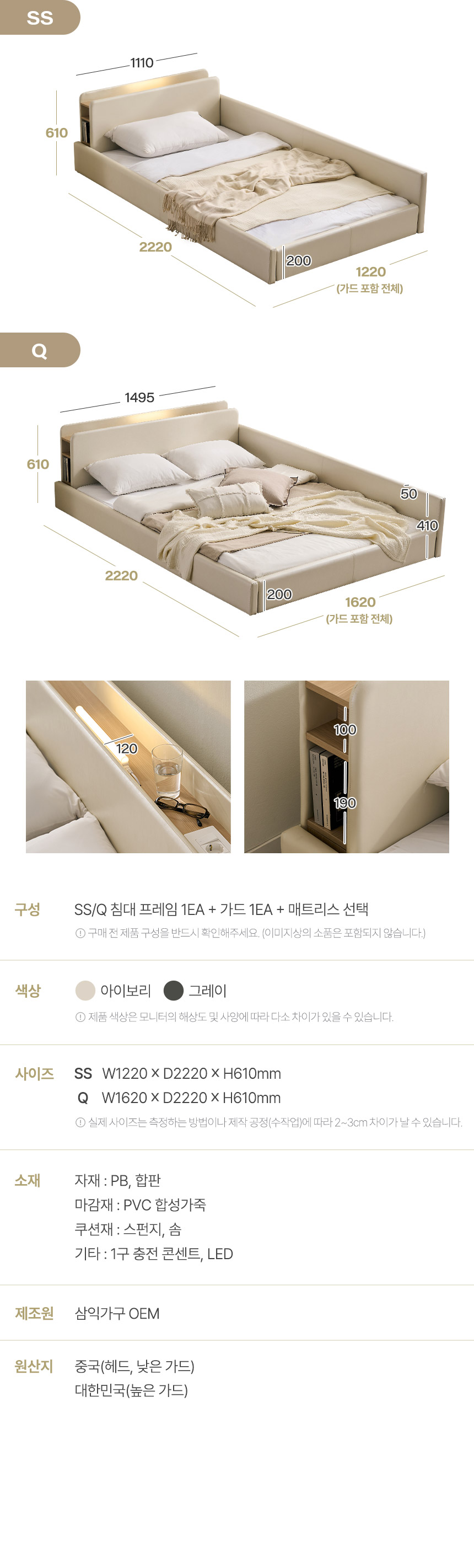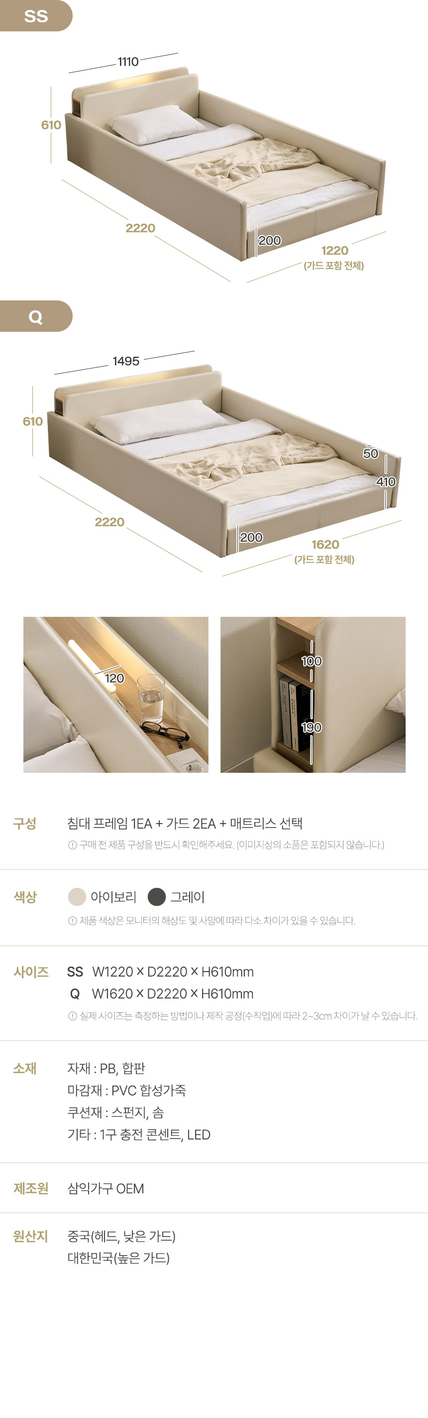 | 품명 및 모델명 | 해온 LED 오픈/밸런스/가드 저상형 가죽 침대(SS/Q) | ||