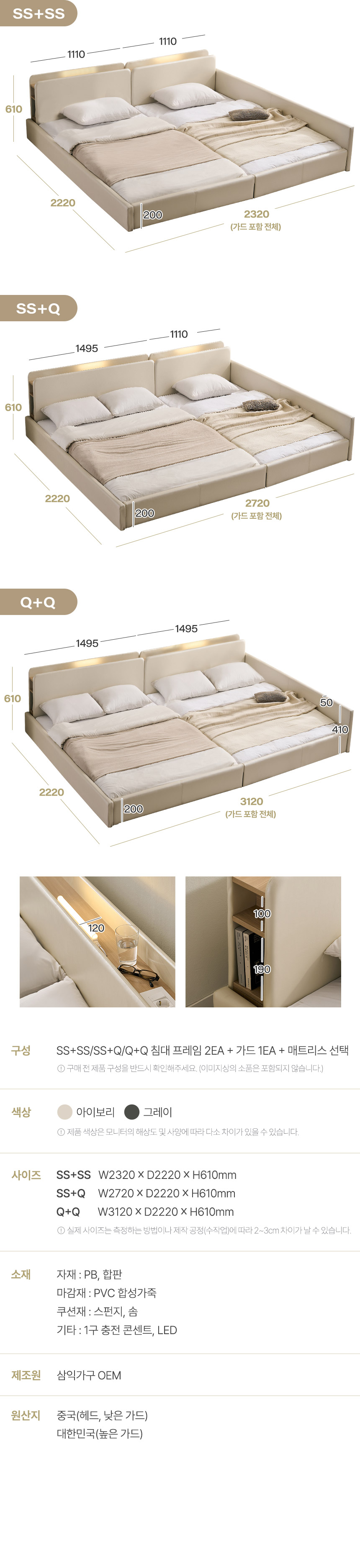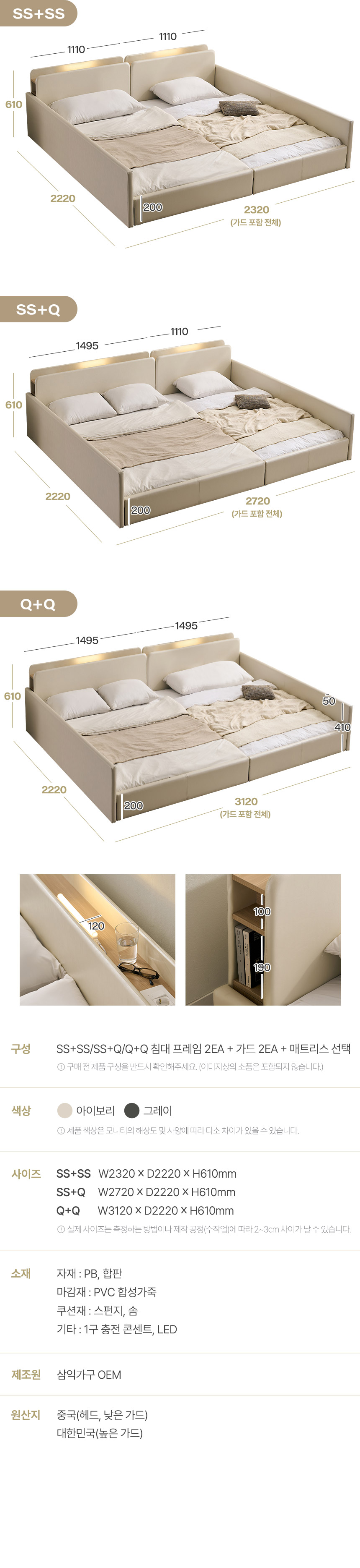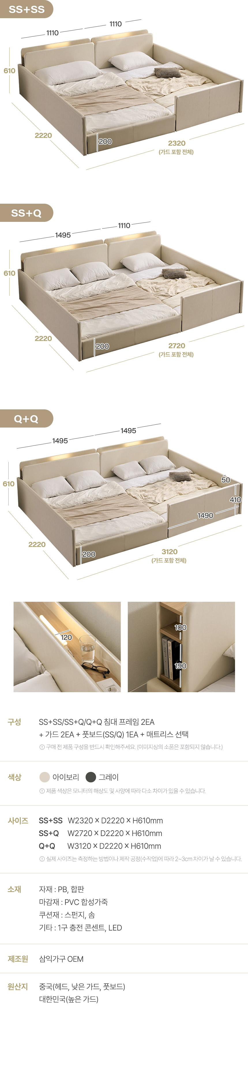 | 품명 및 모델명 | 해온 LED 오픈/밸런스/가드/벙커 저상형 가죽 패밀리 침대(SS+SS/SS+Q/Q+Q) | ||