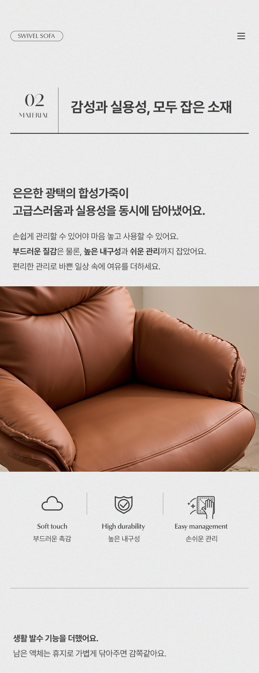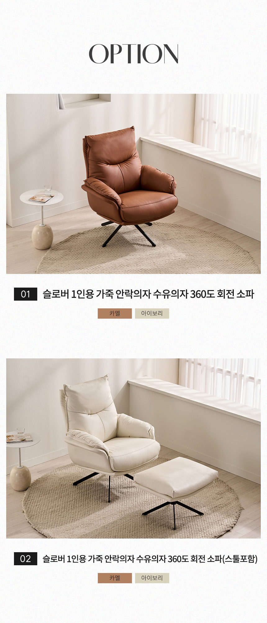 | 품명 및 모델명 | 슬로버 1인용 가죽 안락의자 수유의자 360도 회전 소파 | ||