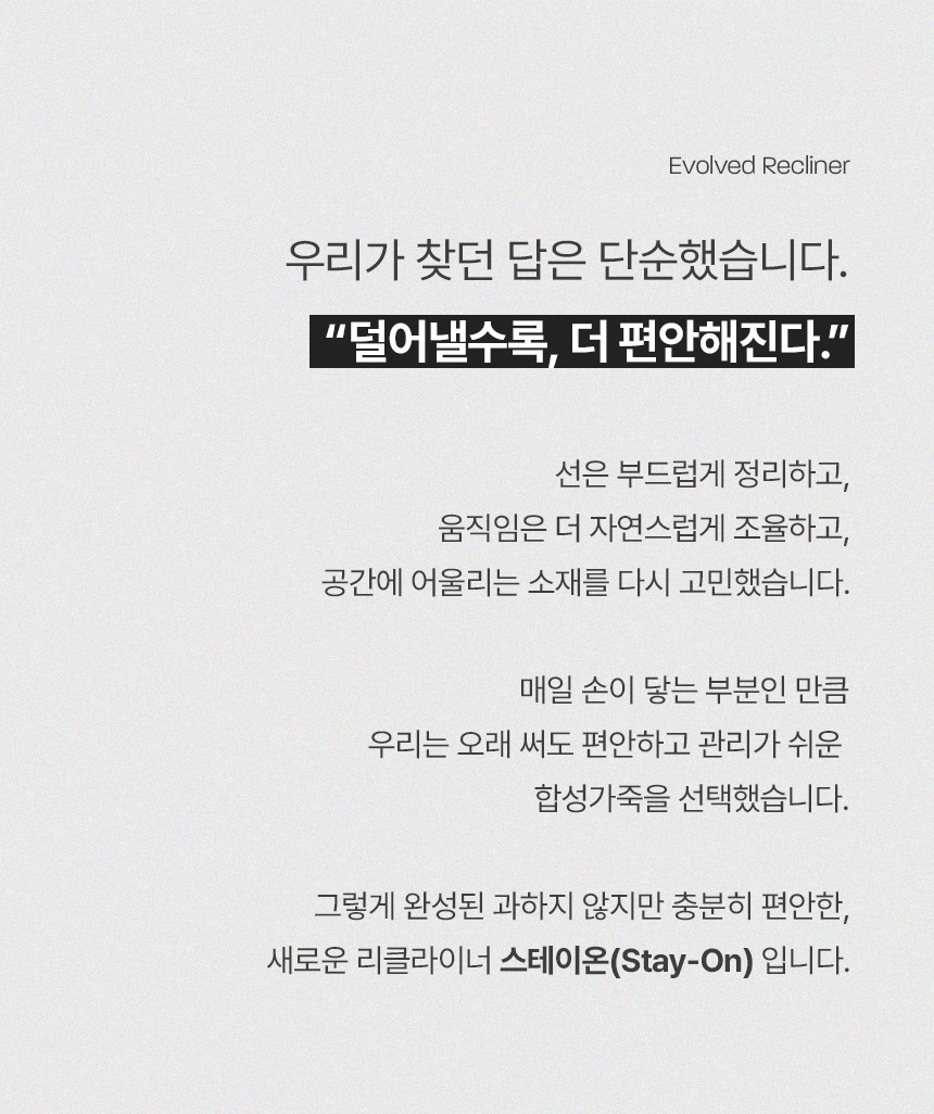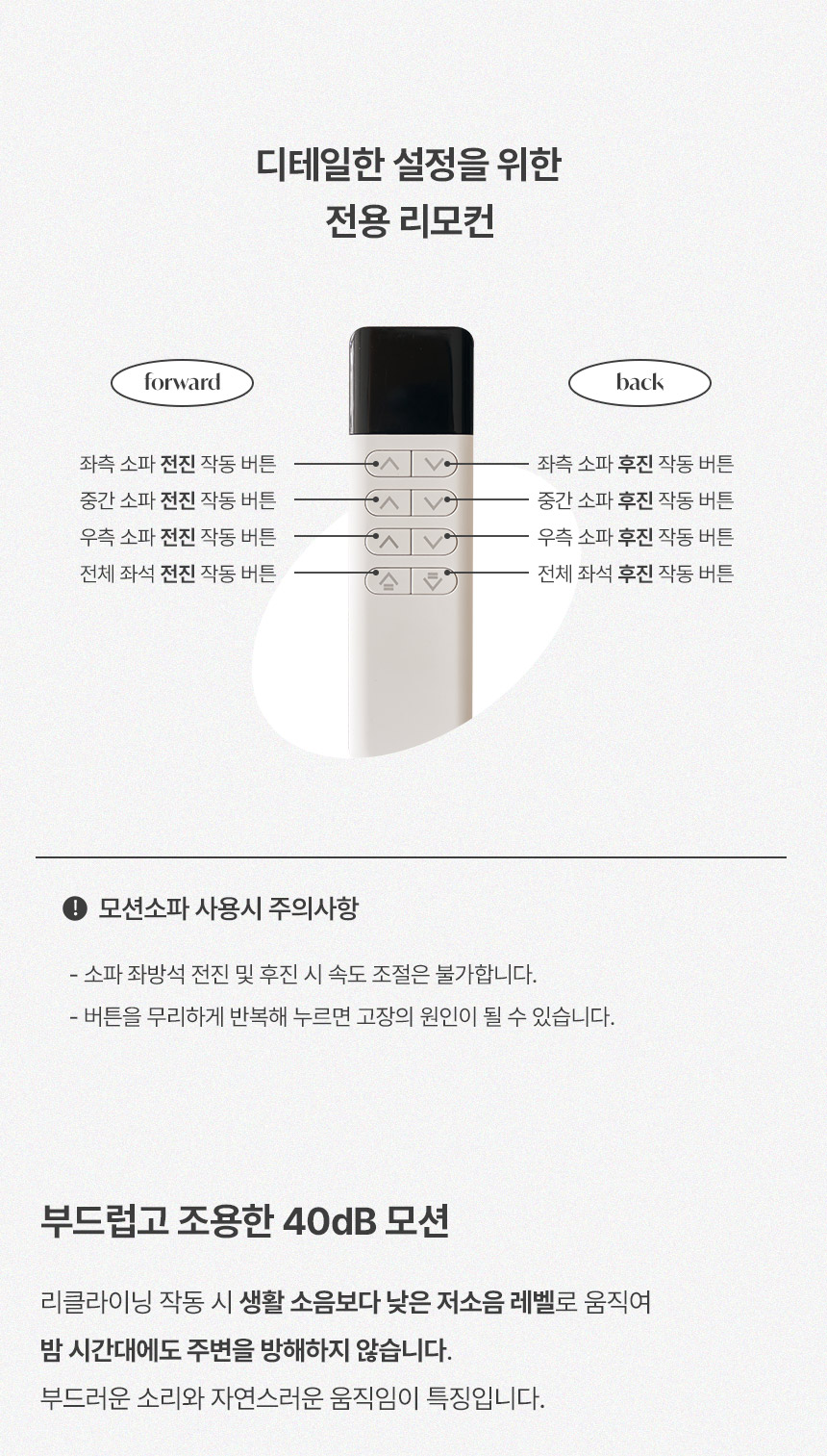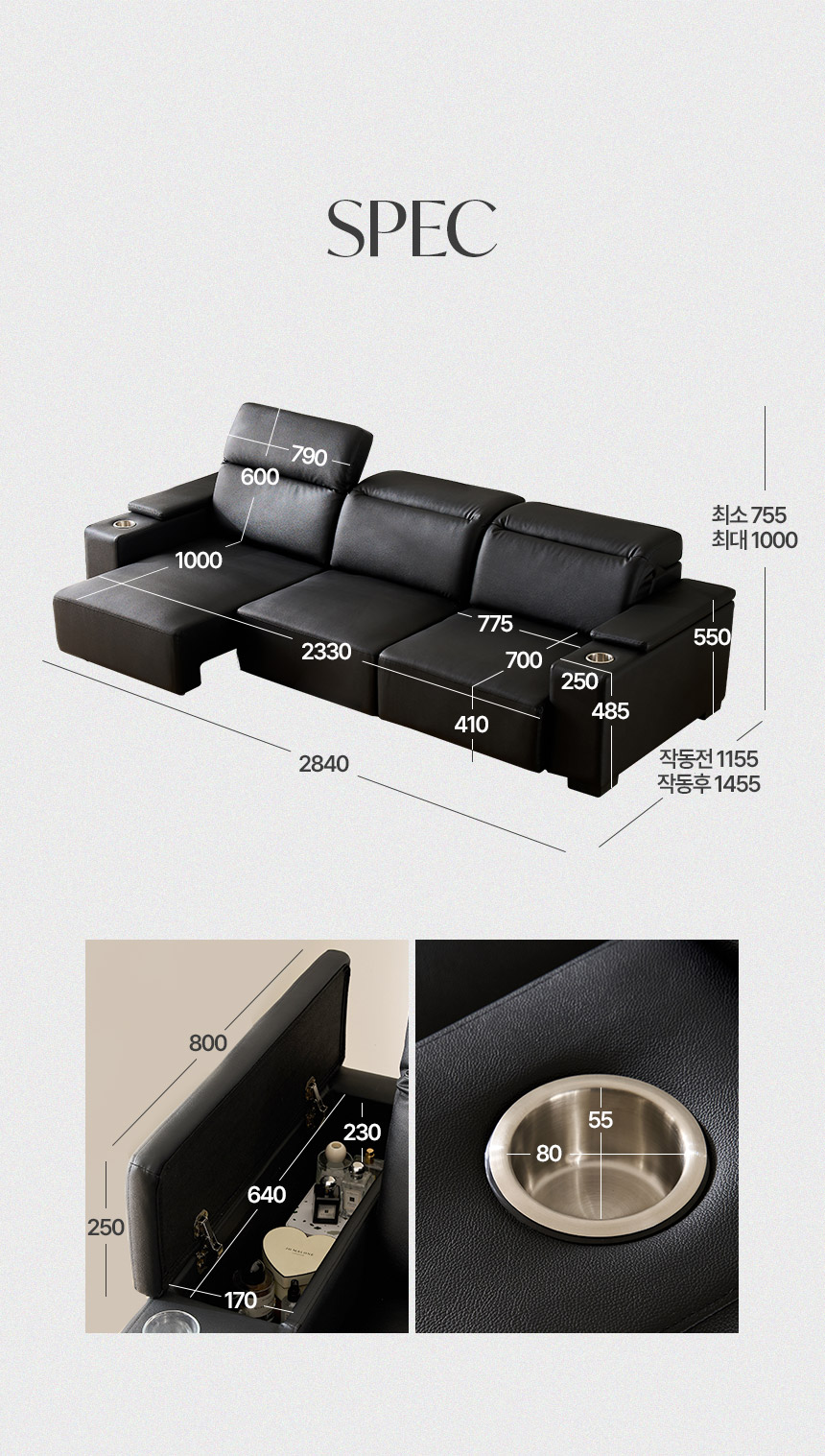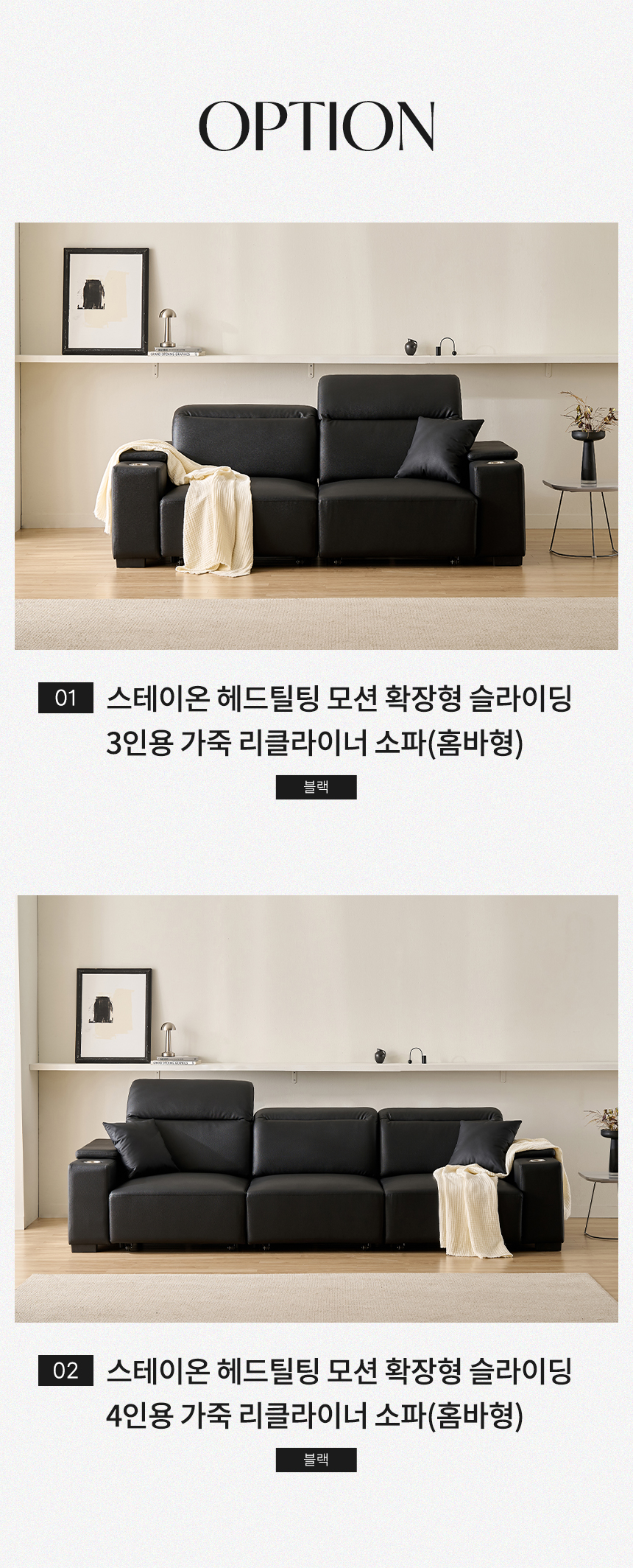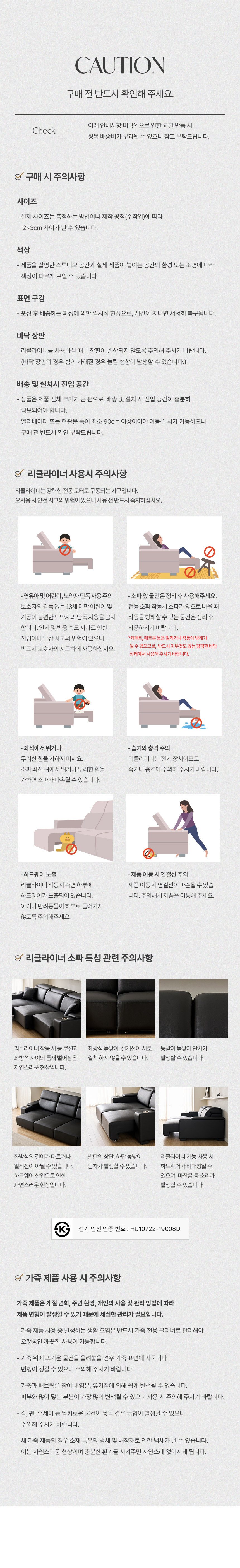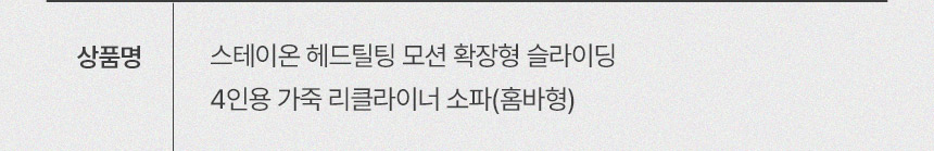 | 품명 및 모델명 | 스테이온 헤드틸팅 모션 확장형 슬라이딩 3/4인용 가죽 리클라이너 소파(홈바형) | ||