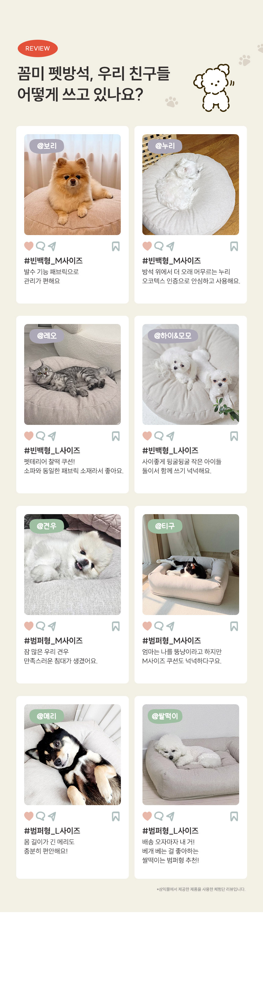 | 품명 및 모델명 | 꼼미 프리미엄 커버 분리형 빈백 범퍼 강아지 방석 애견 쿠션 | ||
