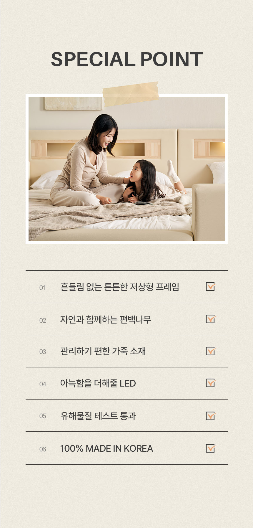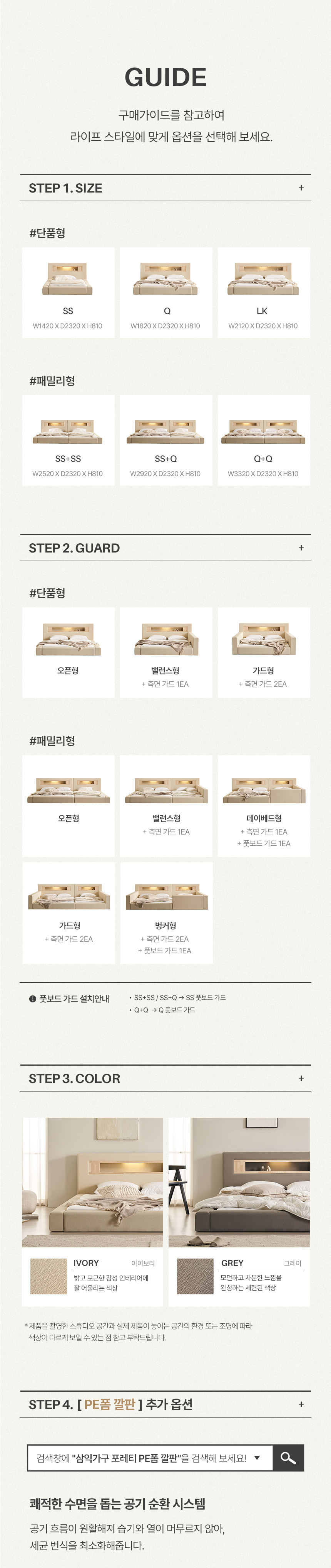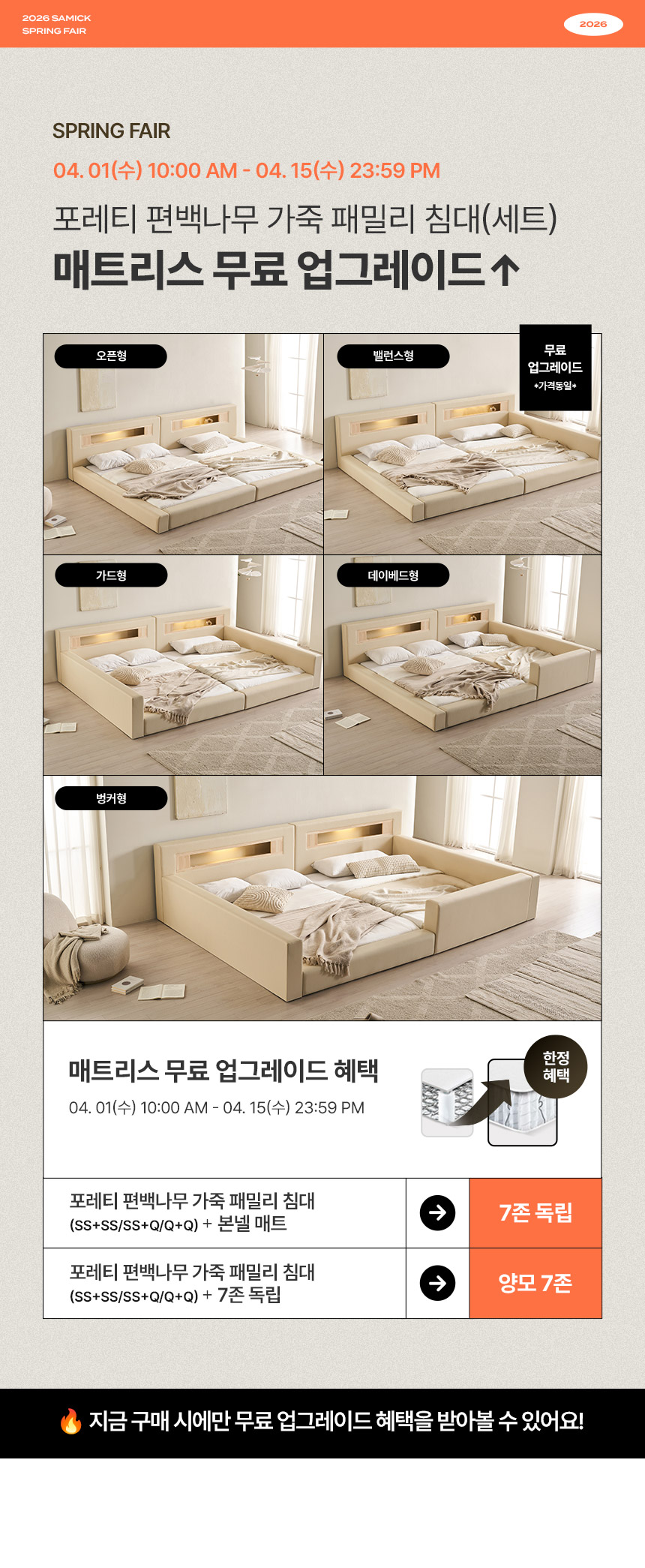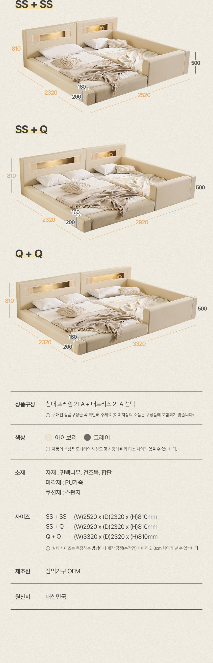 | 품명 및 모델명 | 포레티 편백나무 LED조명 가죽 패밀리 침대 (SS+SS/SS+Q/Q+Q) | ||